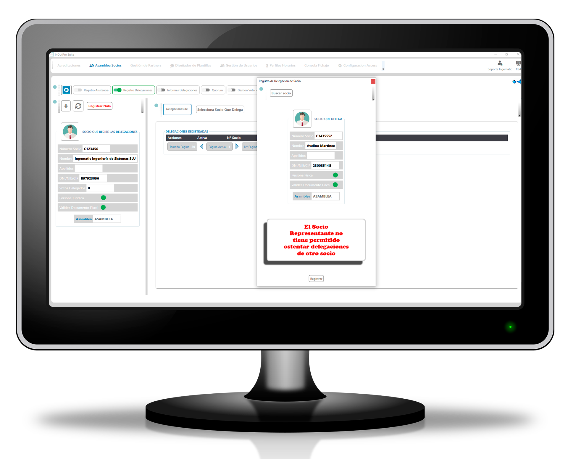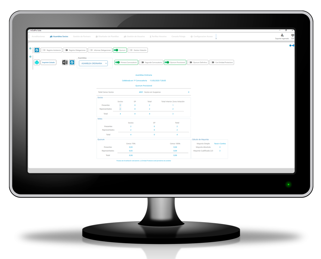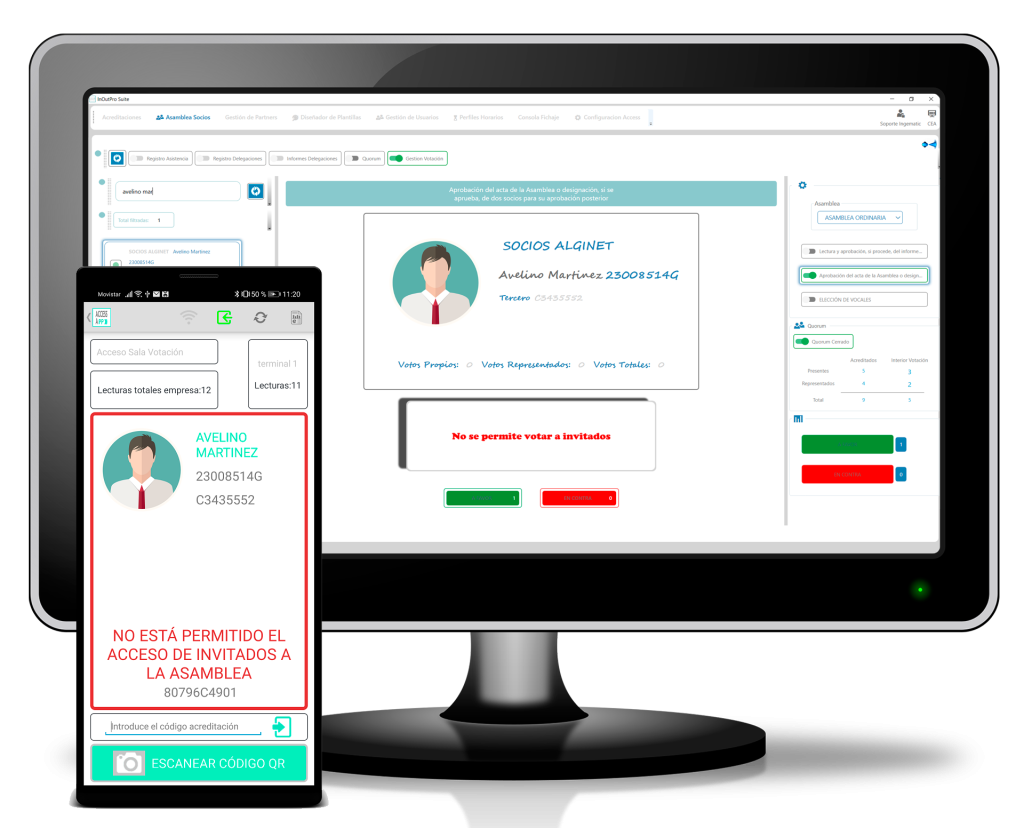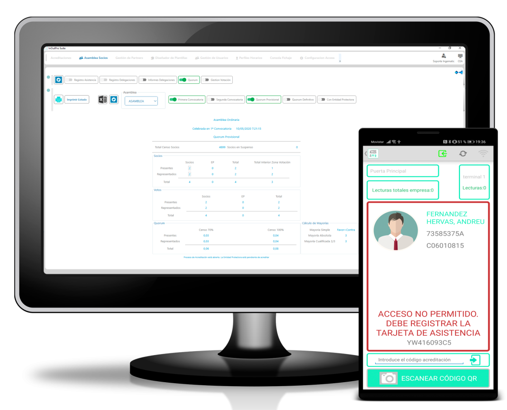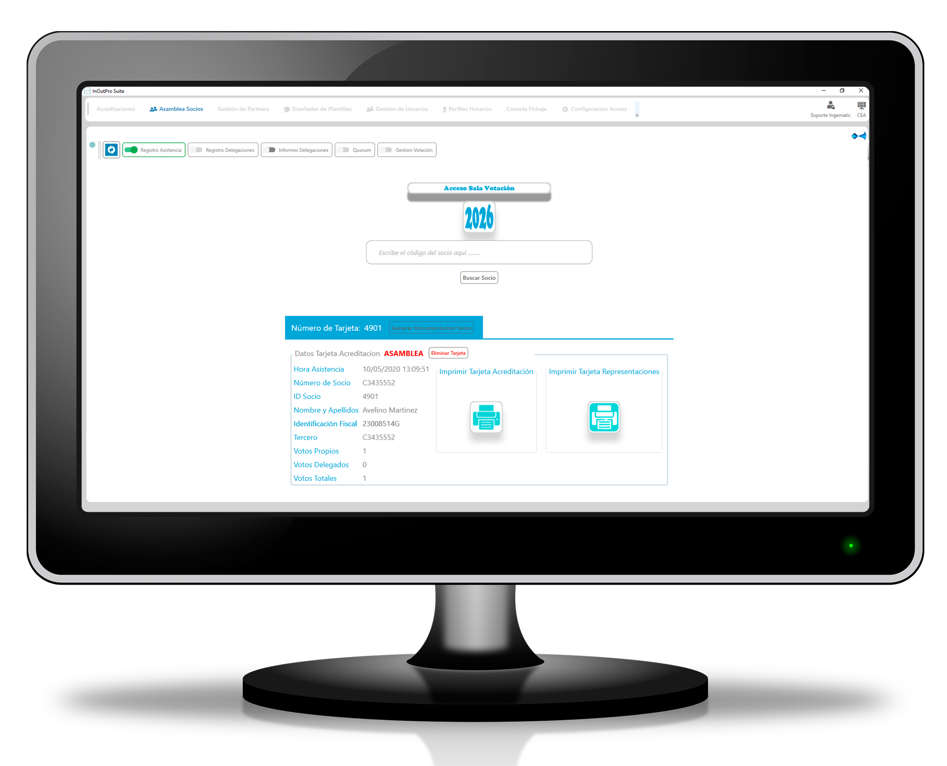 Identificando al socio a través de su código de barras único, podrás realizar el recuento de las votaciones controlando por ejemplo, la duplicidad de votos y socios no acreditados. Podrás agilizar la votación con varios puestos de atención simultáneos, que sumarán de forma coordinada todos los votos
