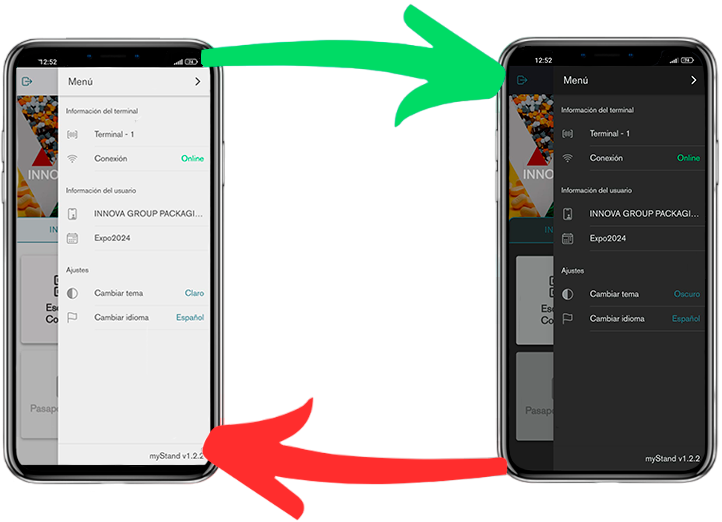 En la aplicación contamos con dos modos de visualización: "Claro" y "Oscuro". De esa forma siempre podrás ajustar la visibilidad según las condiciones de la iluminación del sitio donde se realizan las lecturas.