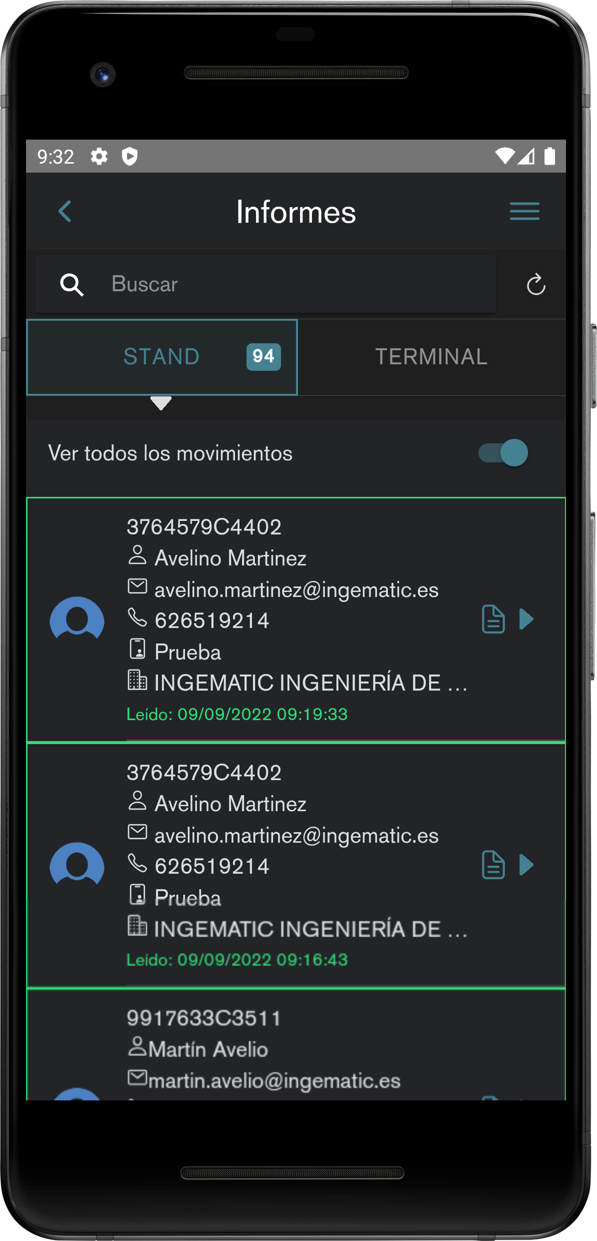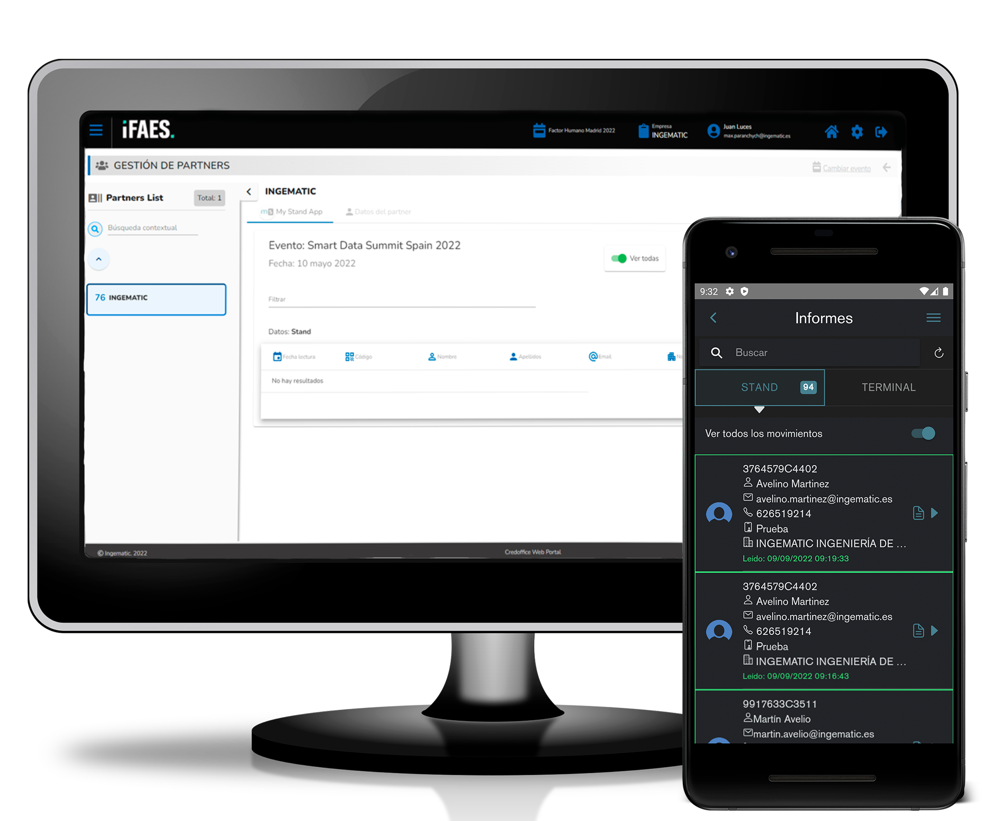 Explora todas las lecturas de tu stand en la sección de informes y mantén un seguimiento de tus contactos durante todo el evento.